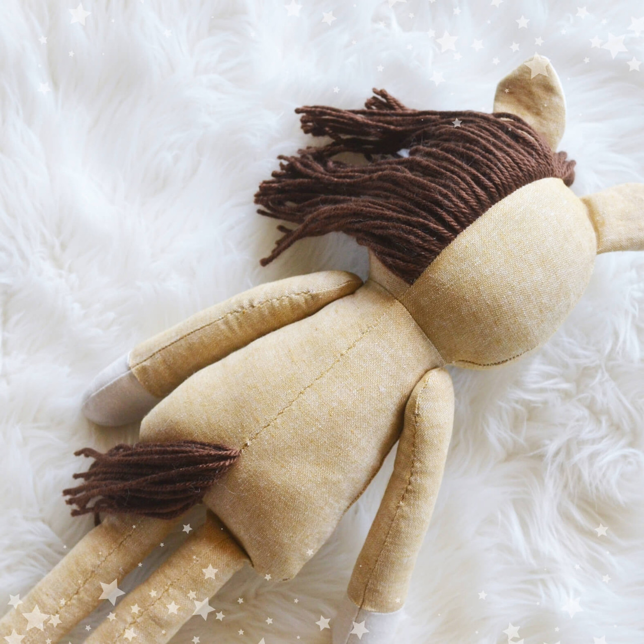 - Tail and Mane— Features flowing yarn tail and mane on the reverse